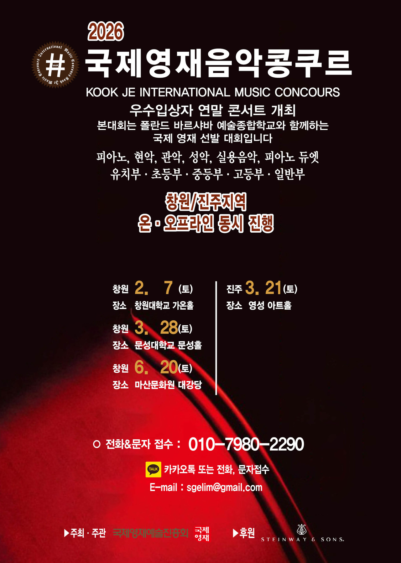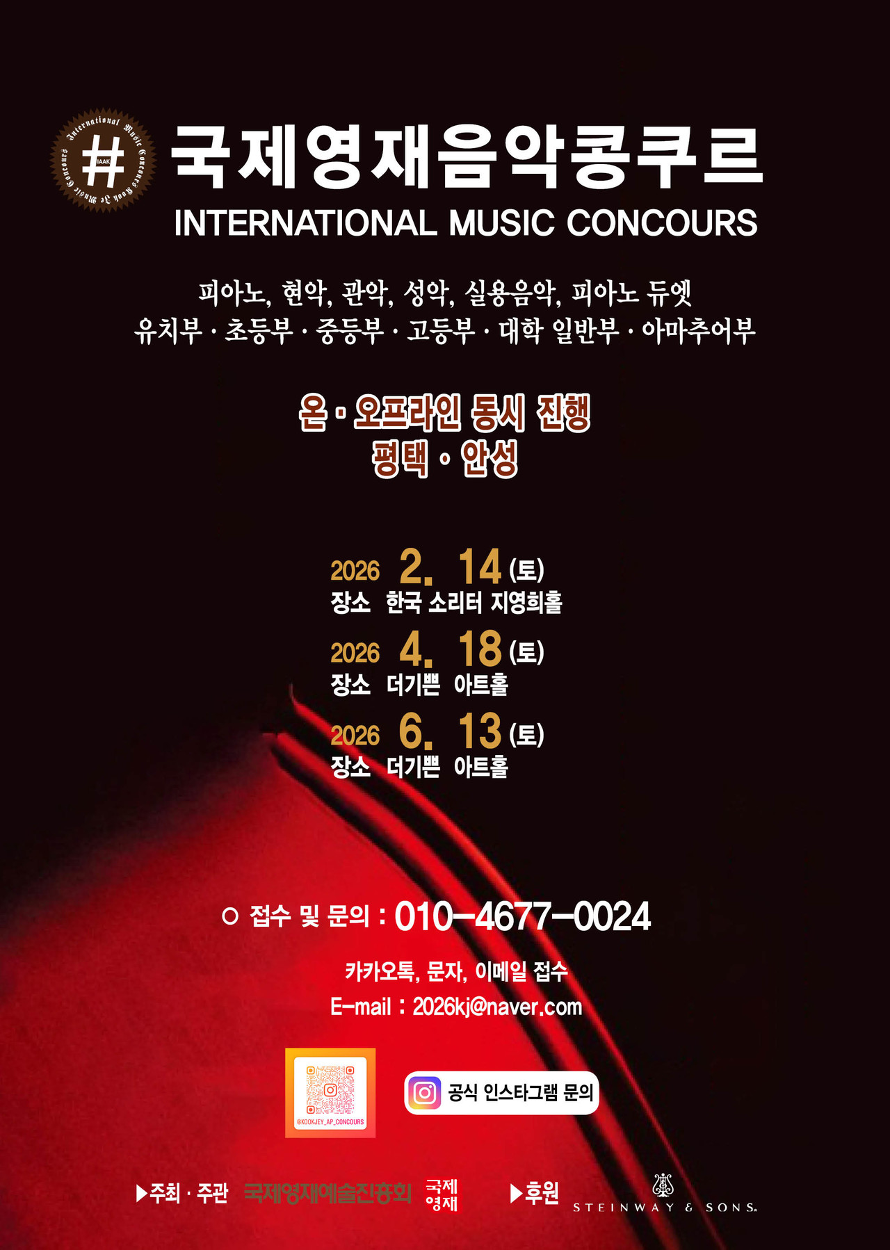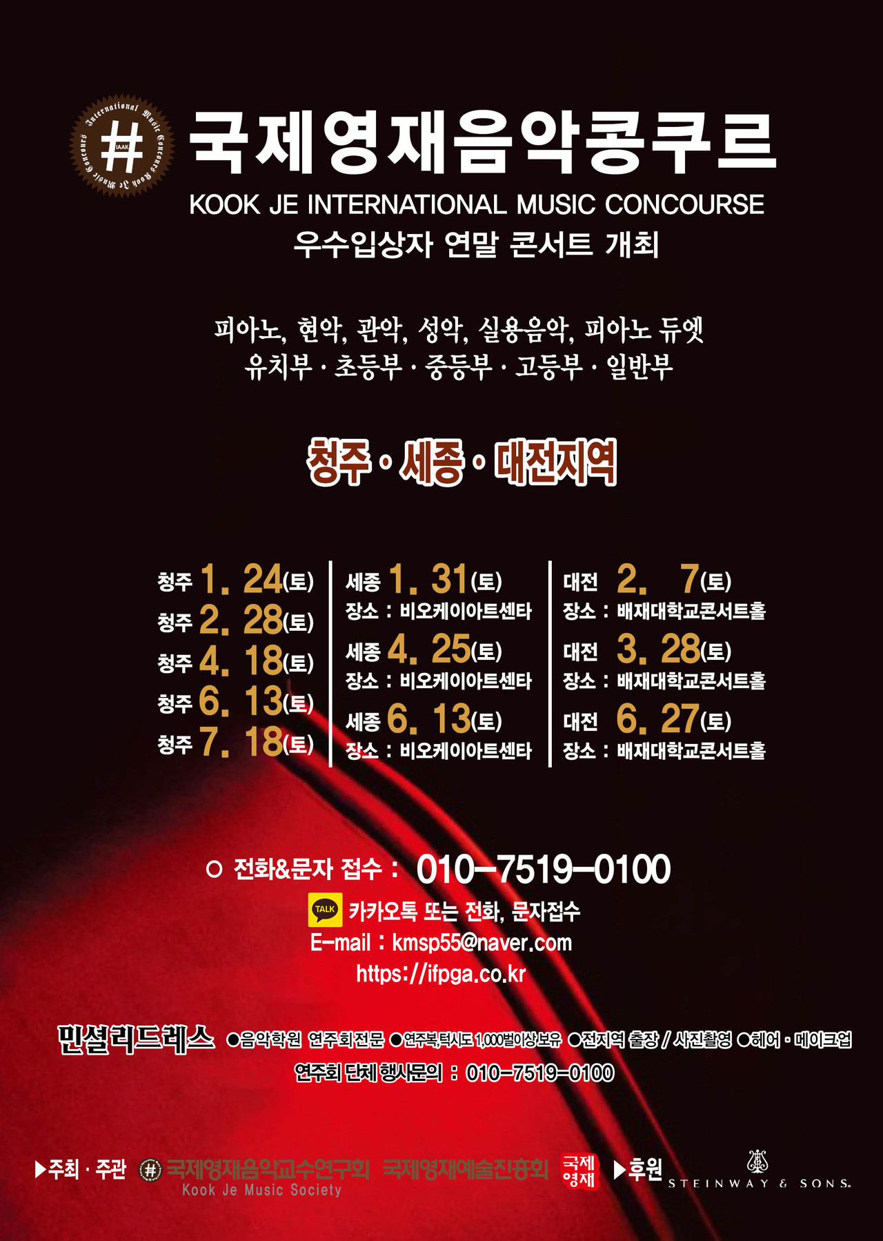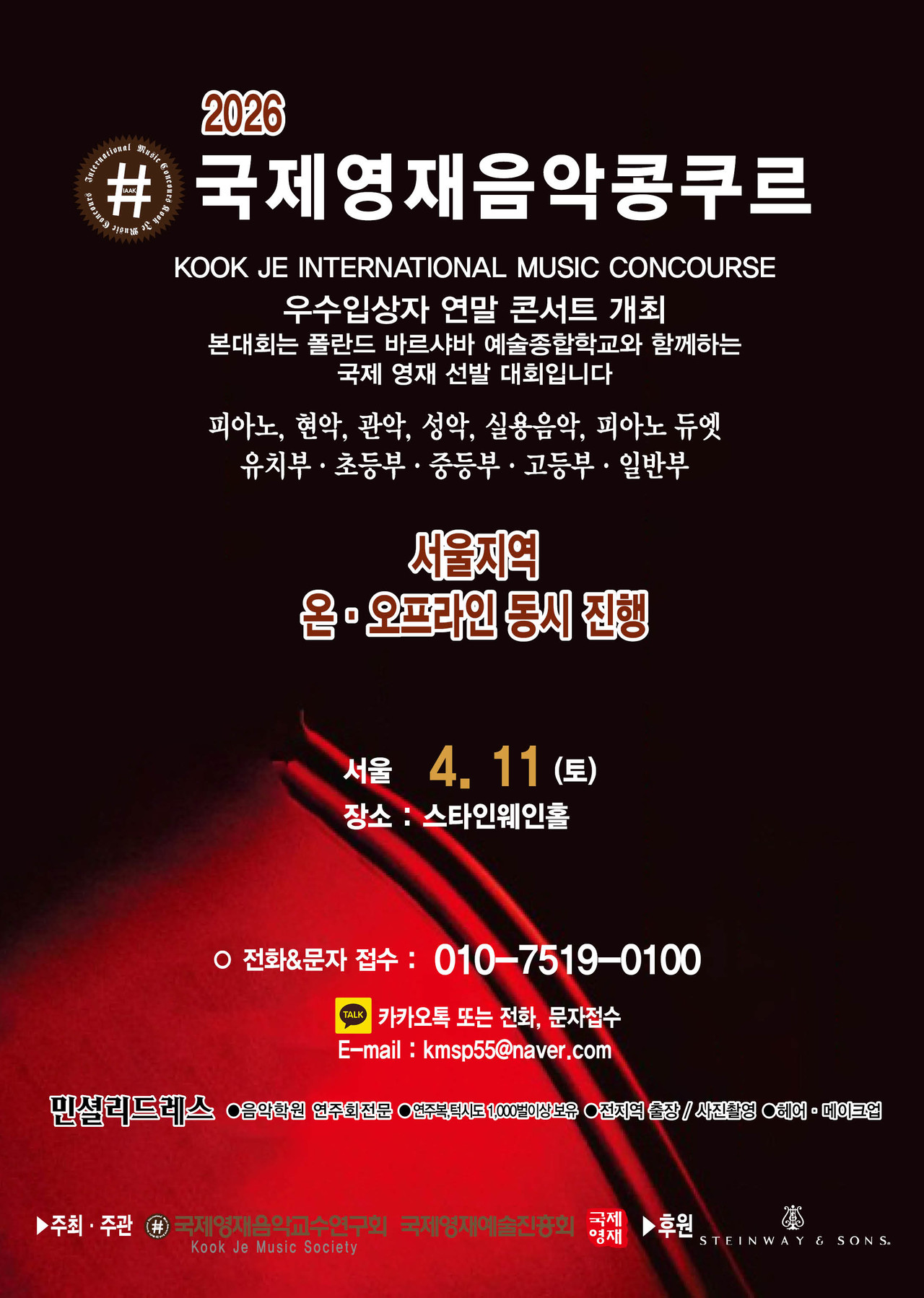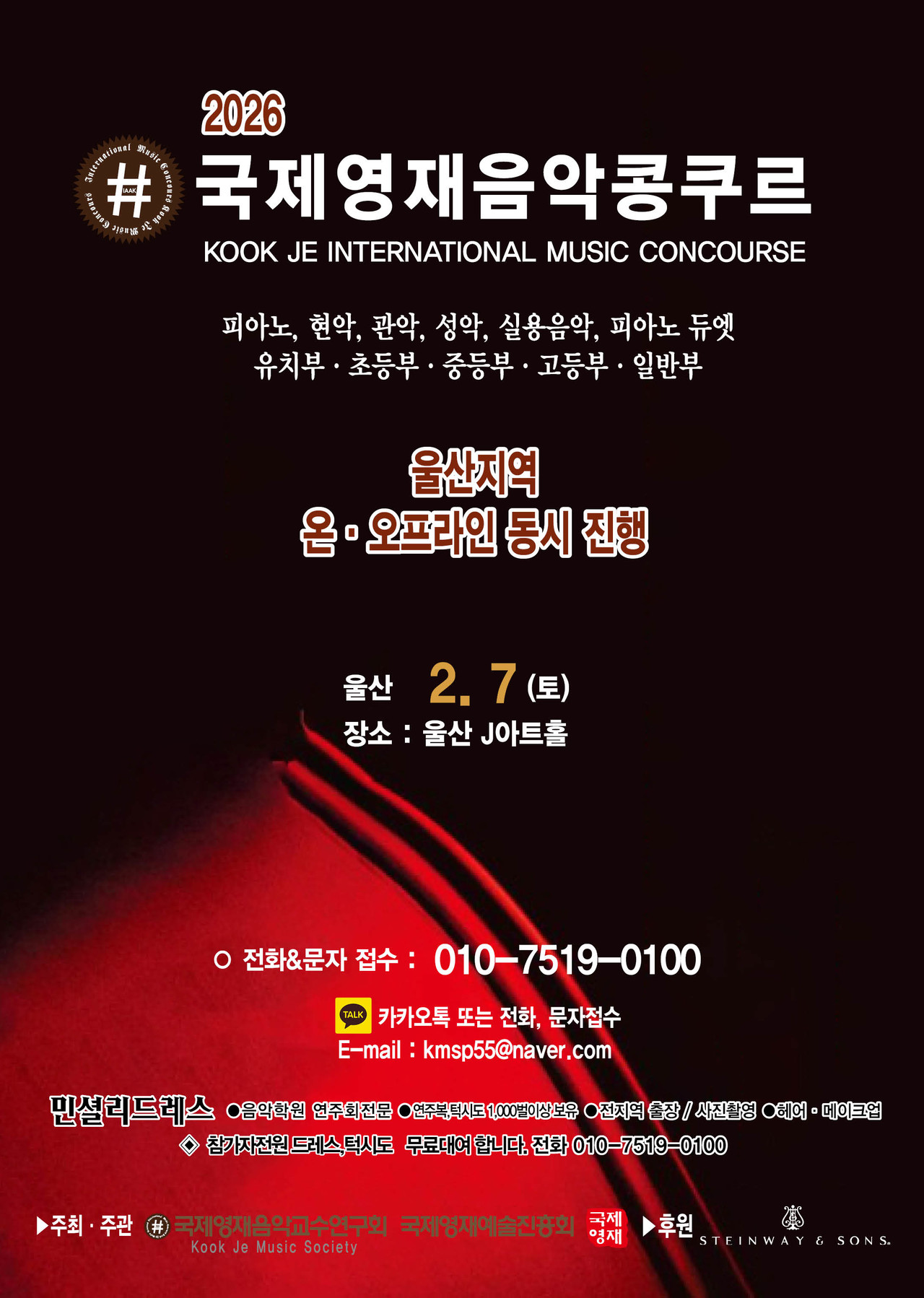 ※ 관악, 현악, 성악, 실내악은 반주자를 동반하며, T자는 반드시 본인이 지참해 주십시오.
