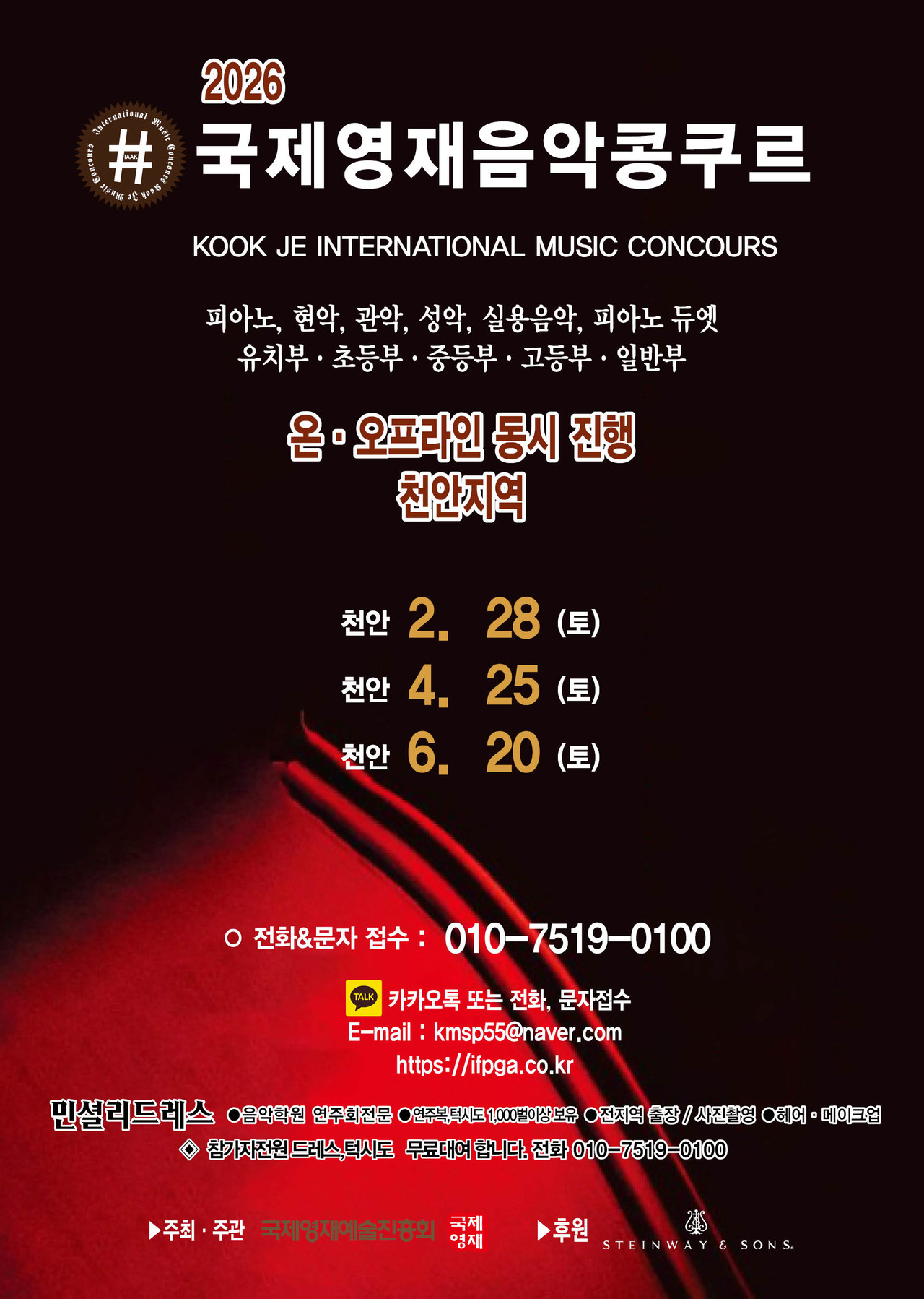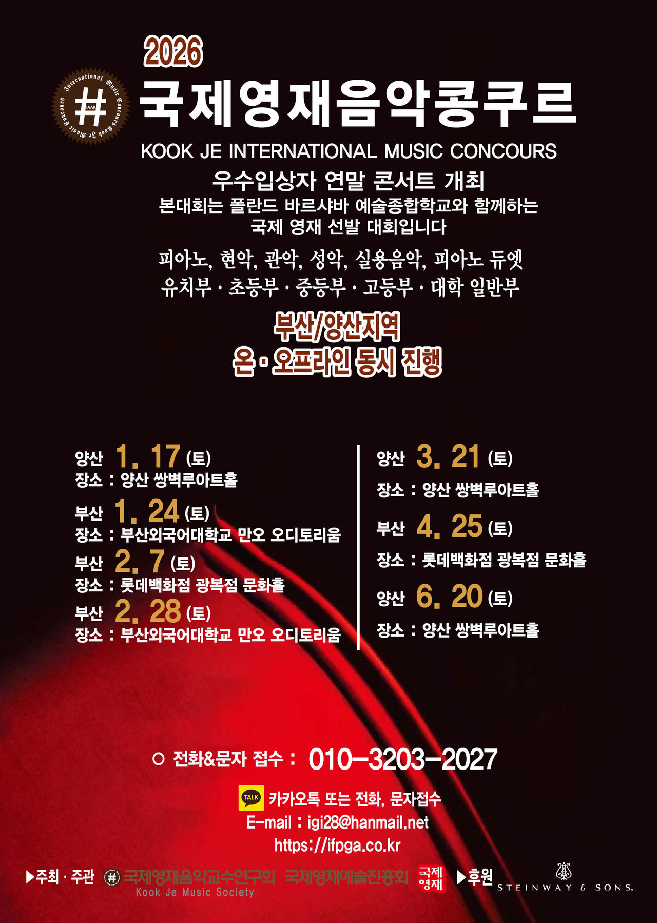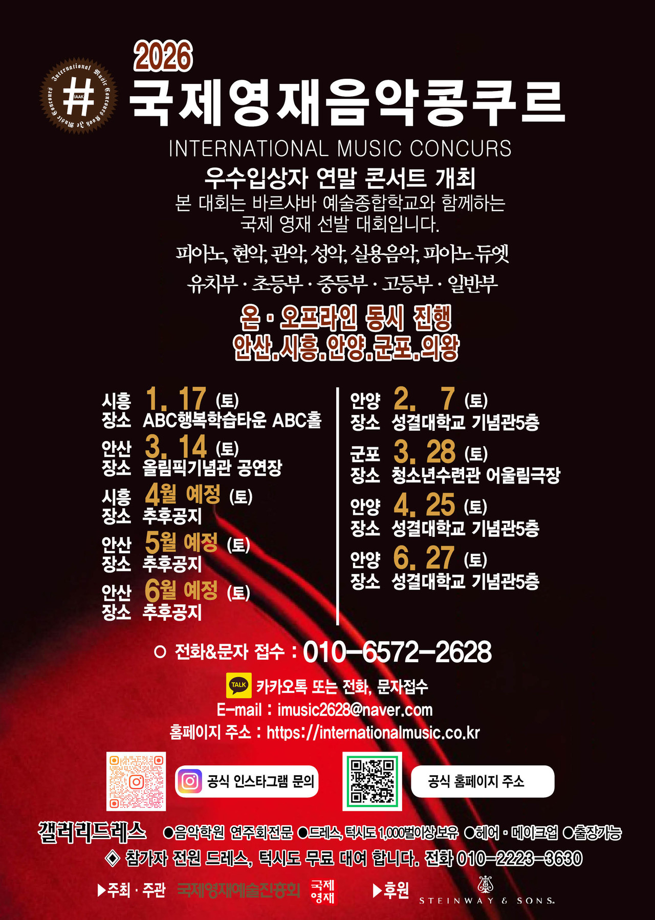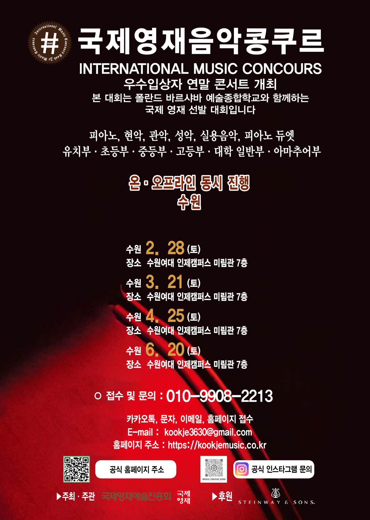 ※ 관악, 현악, 성악, 실내악은 반주자를 동반하며, T자는 반드시 본인이 지참해 주십시오.
