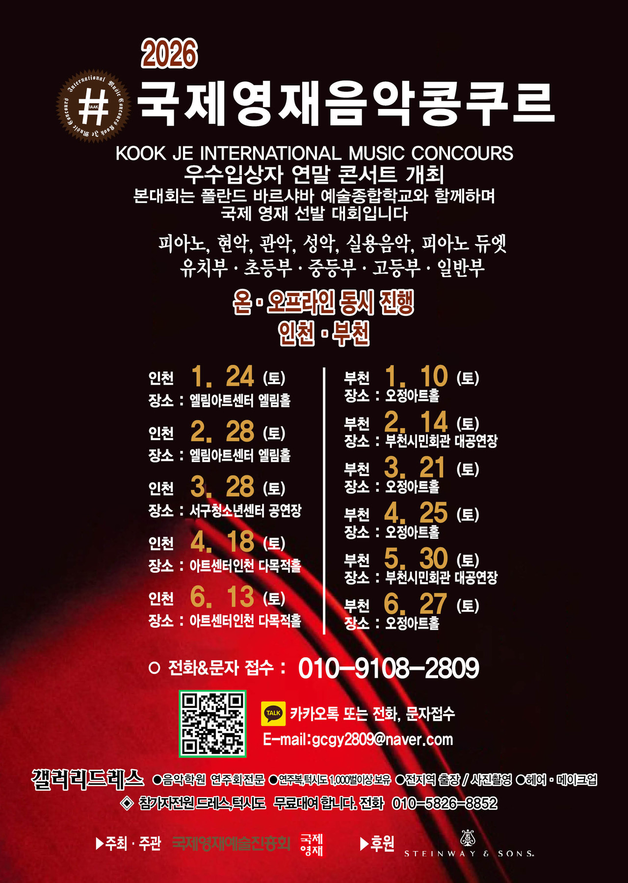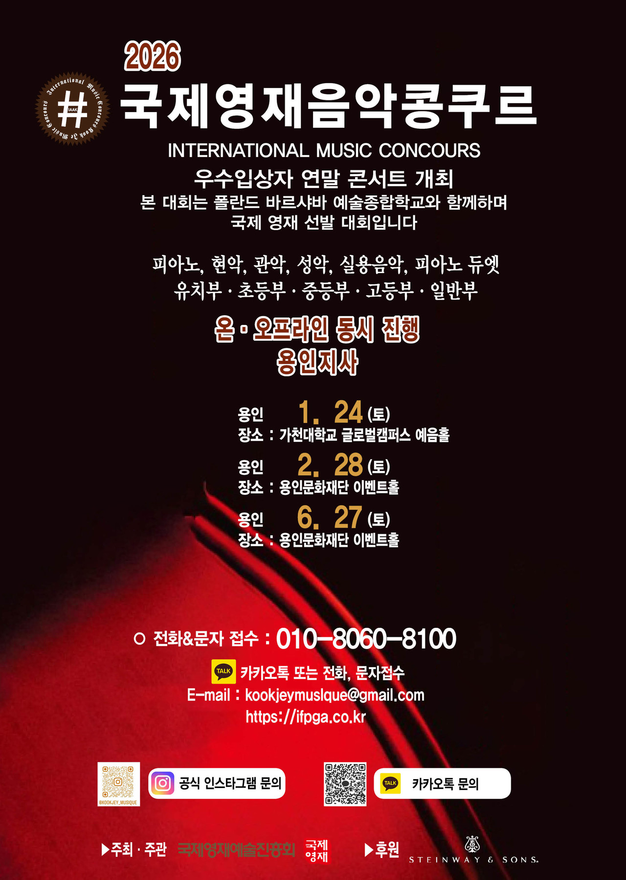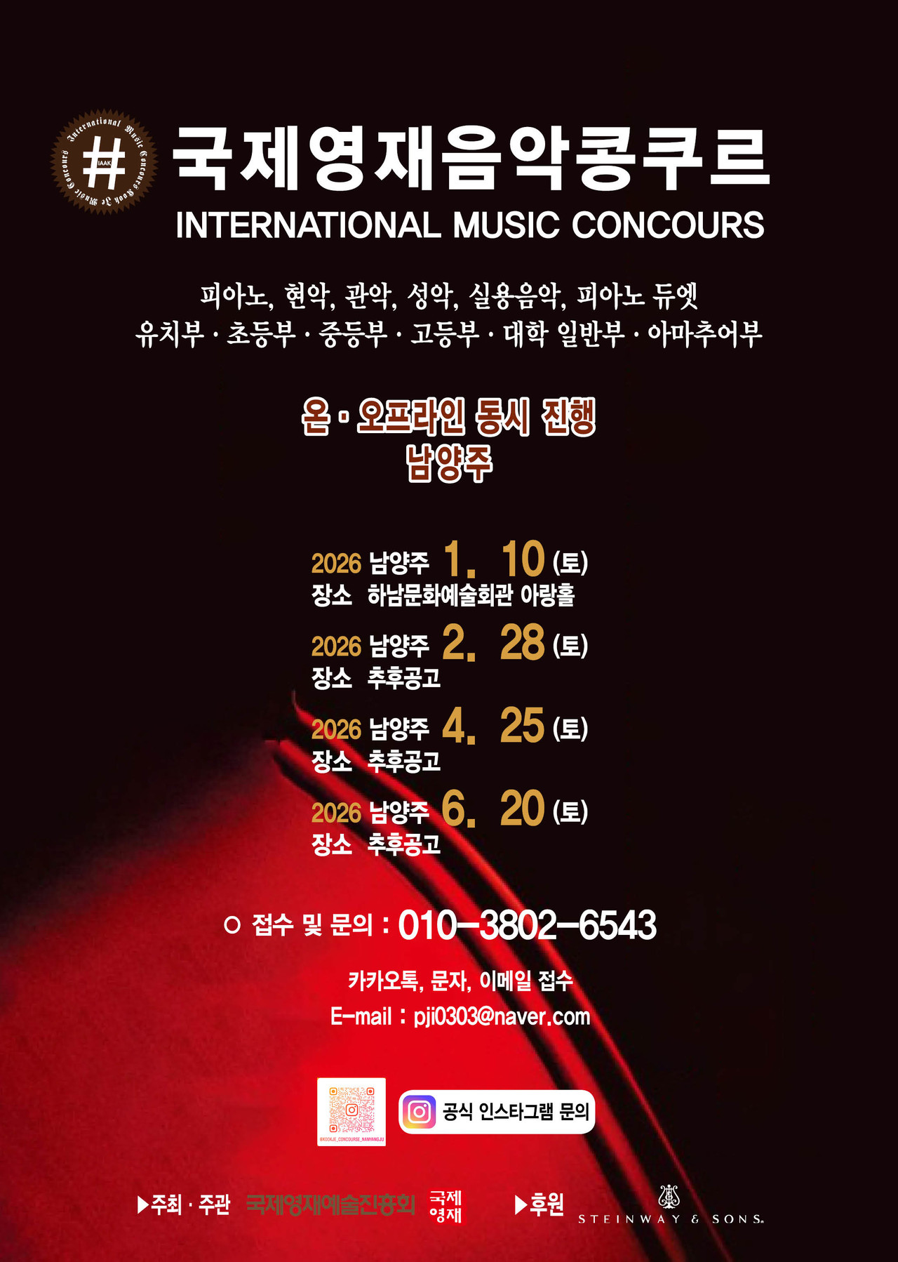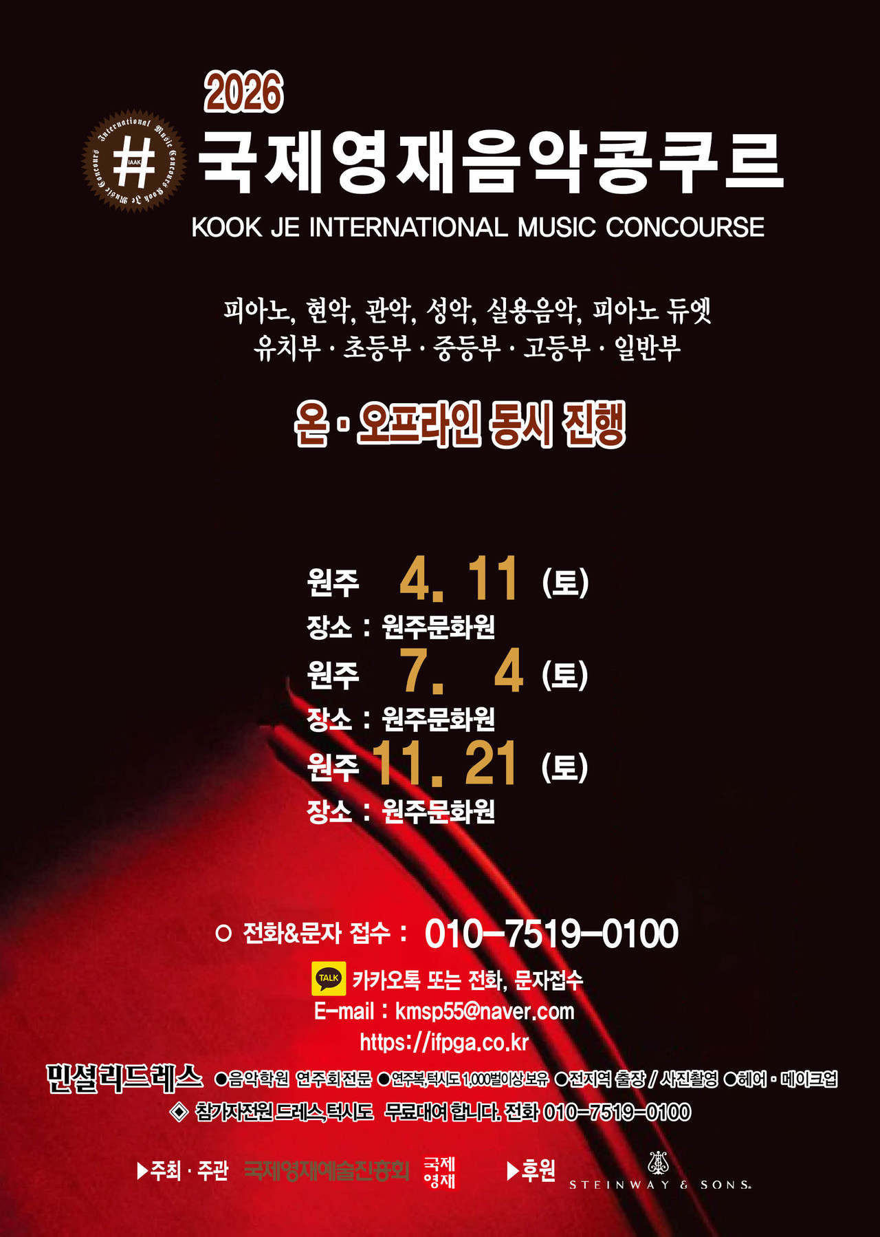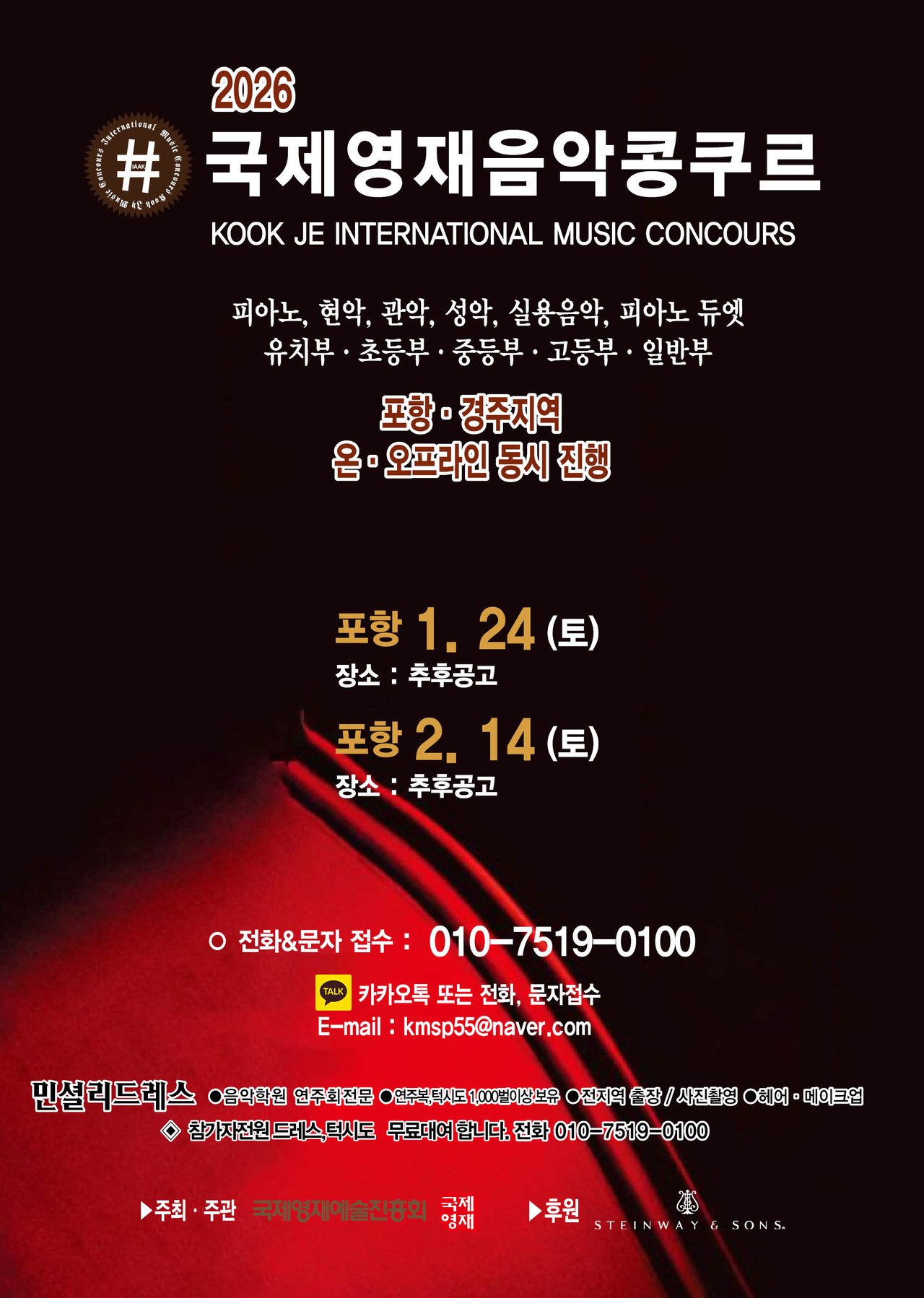 ※ 관악, 현악, 성악, 실내악은 반주자를 동반하며, T자는 반드시 본인이 지참해 주십시오.